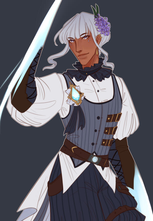 Hyacinthe tends to be very blunt and straightforward, and especially doesn't hide their upbringing of being an android. Their initial stoic nature may paint them as being cold or inconsiderate, but rest assured this is just how they normally are. They tend to open up more around good friends.Although an android, they're somewhat expressive than what most expect. This stems from multiple factors that occurred during their backstory, but the main thing to note is that they've grown beyond their programming.They have no qualms with socializing, but they may come off sounding strange or awkward at times. Perhaps, even somewhat unnerving, but they mean no harm.They're used to often being on their own, but does not typically mind companions unless they pose an evident threat or hindrance to their work. Hyacinthe is normally very easy-going and patient, but does have the capability of drawing boundaries if need be.That said, any companions who do have a profound impact on Hyacinthe will otherwise be bestowed the latter's loyalty and protection. Hyacinthe is known to be highly protective of trusted companions (especially of their master) and often will not hesitate to resort to dire measures if any of their lives are in danger.Hyacinthe seems to have a curious nature and the will to learn, especially since their scope of knowledge is merely limited to what data or information they currently know. They are eager to learn as long as the info proves to have purpose and adds to their knowledge.